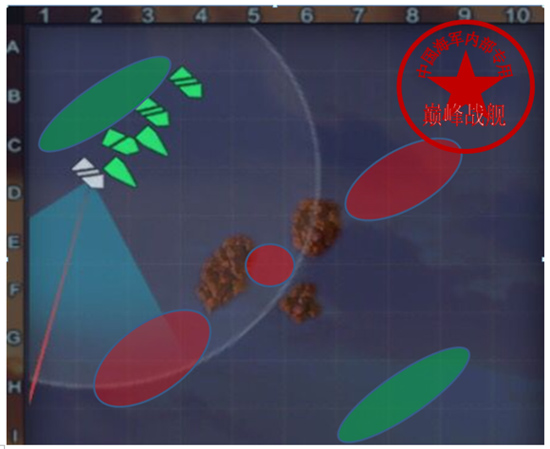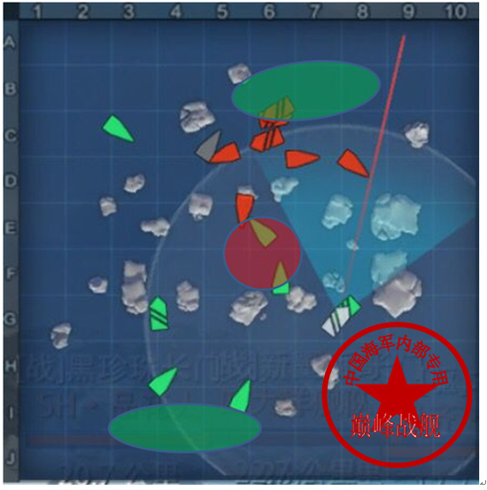 红色椭圆型区域为双方推荐交战区域,可作为驱逐点灯区域,当然视情况而定。因为这张图相对简单,也是低级场相对多见的地图。不做多的解释。