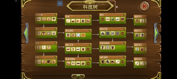 点开以后可以看到解锁科技需要什么,该砍砍,该挖挖,慢慢就玩懂了
