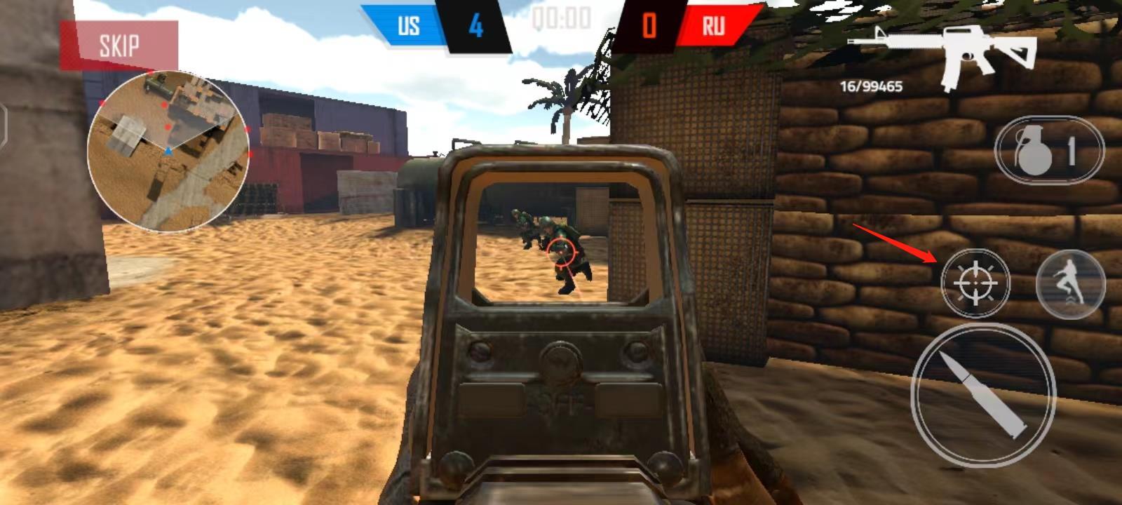 5、由于右边要进行射击,所以如果选择右边滑动屏幕来瞄准的话就会不方便,因此可以上下倾斜手机来达到瞄准的效果;
