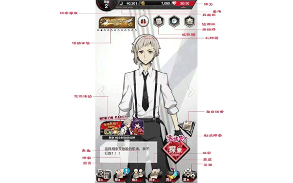 9、侦探社:在侦探社里每隔一段时间可以从对应角色处领取奖励,可用素材或异能石强化侦探社内的角色工作环境,以缩短等待时间及提高奖励等级。