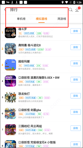 2、同时还罗列了网游榜、单机榜、模拟器榜;
