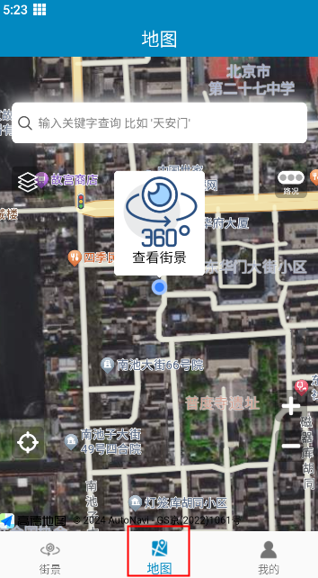 4、而在地图功能里,用户可以在上方搜索栏搜索,就可以查看该地方的街景;