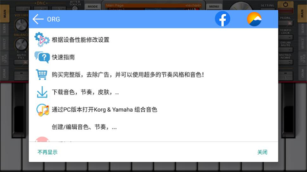 此部分包括四个选项:声音/循环、键盘设置、风格选择和和弦/迷你键盘