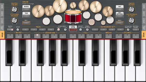 4、使用以下方式模拟KORG键盘:淡入淡出,同步,键盘设置,速度,移调,八度,平衡,音调,分割,和弦记忆,点击速度/重置……