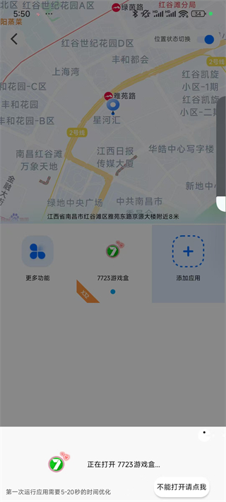5、添加完软件后就能在添加界面查看到,上方会显示定位的位置,要是不满意手动输入位置或者滑动地图修改即可。