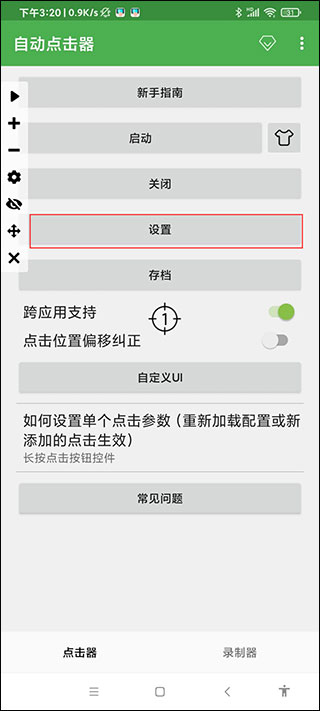 通过设置可以设置全局的点击间隔,触摸时长,重复次数。还有快速设置功能