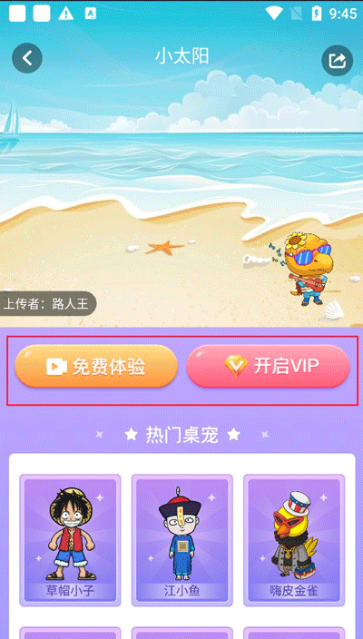 3、进入宠物页面后点击免费体验获得宠物,也可以选择开启VIP来快速获得喜欢的宠物哦