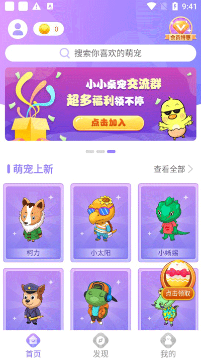 2、在首页选择一个自己喜欢的宠物,也可以点击查看全部寻找更多宠物
