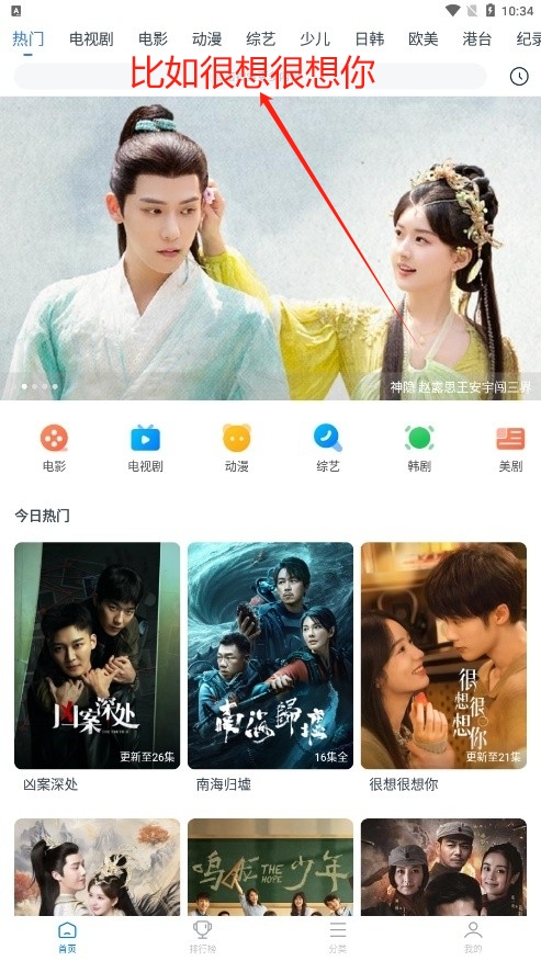 4、最后你也可以根据上方的搜索栏进行搜索你想看的视频。