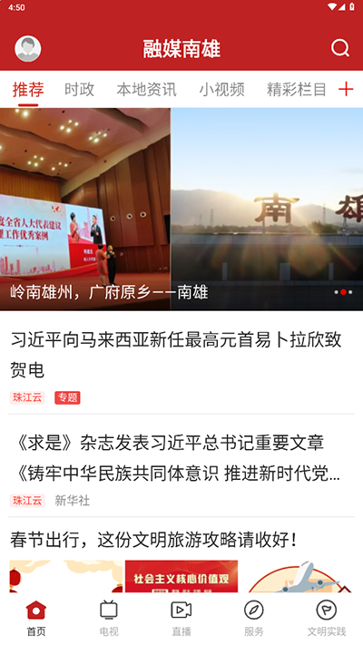 融媒南雄app是一款地方性新闻综合服务软件,实时播报南雄本土新闻资讯和民生热点,讲南雄故事,播南雄声音。集新闻、广播、电视、报纸为一体,为用户提供权威、准确的新闻报道。