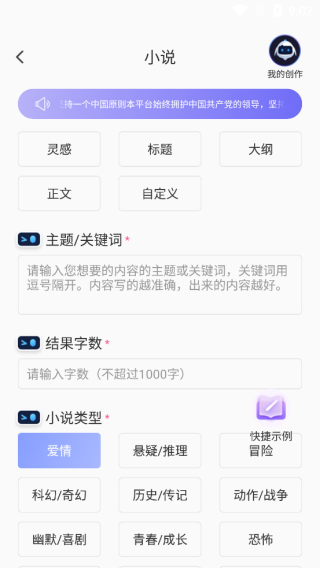 输入文案或长按粘贴文案,根据文案重新改写,智能生成原创文章。