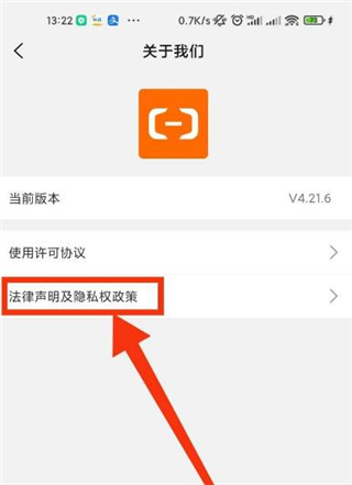 5、进入到关于我们的界面后,我们点击“法律声明及隐私权政策”。
