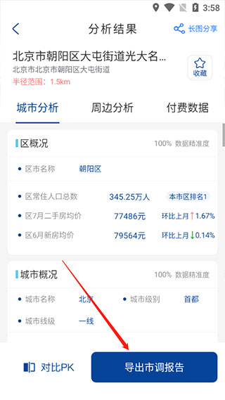【对比PK】支持3个调研点位对比,可以隐藏相同数据项。