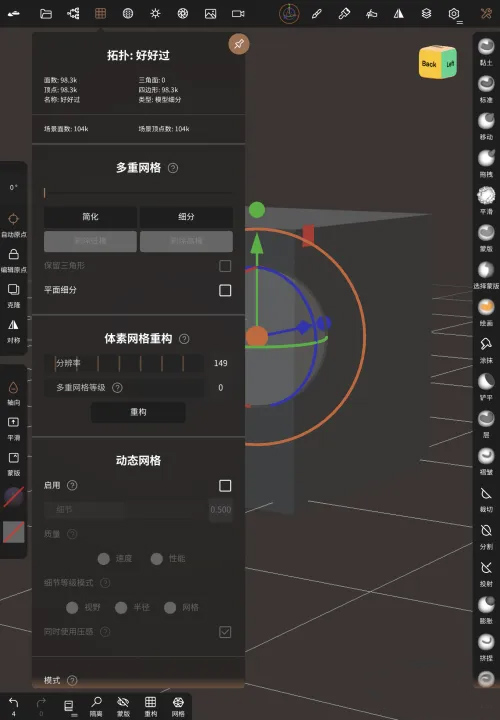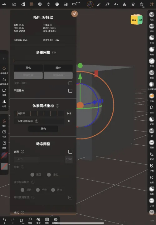 软件提供了从基础建模到高级雕刻的一系列功能,包括文件管理、体素重塑、动态拓扑等,特别适合需要快速创建模型的场景。对于一些复杂操作,比如调整动态网格细节或删除高模,Nomad也设计了简单直观的步骤,帮助用户轻松完成。