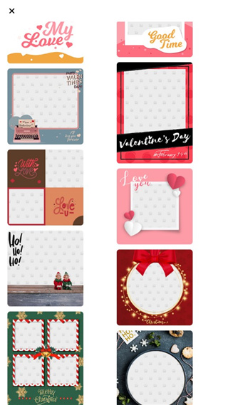 -100+布局可供选择,变换照片组合比例:1:1、3:4、5:4、9:16等