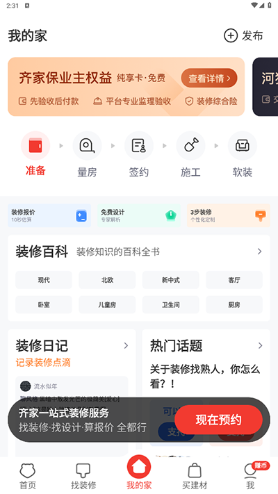 另外,齐家装修app还严选了很多优质口碑的装修公司,直接在平台上就能预约服务,省去了自己找公司的麻烦。软件还提供了一些实用的功能,比如收集真实的业主案例、设计蓝图、建材团购等等,感觉真的很全面。对于像我这种装修小白来说,这个工具真的太友好了吧!操作简单,功能强大,而且还能学到很多装修知识。