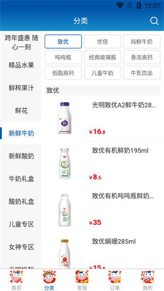 1、商品分类功能,自动为用户将各种不同的商品进行分类管理,即牛奶、酸奶、儿童乳品以及面包等;