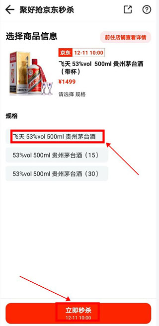 4、进入后,选择产品的规格,点击立即秒杀。