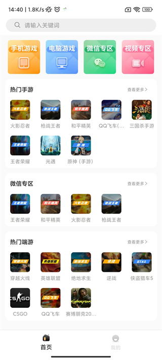 3、进入软件首页界面后,你可以看到有诸多游戏;