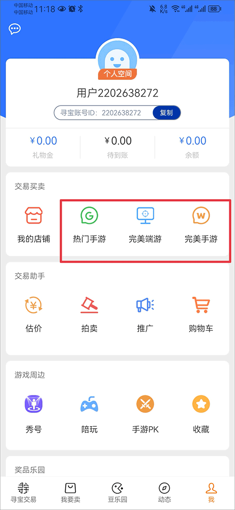 1、在我的界面中选择热门手游、完美端游、完美手游进入