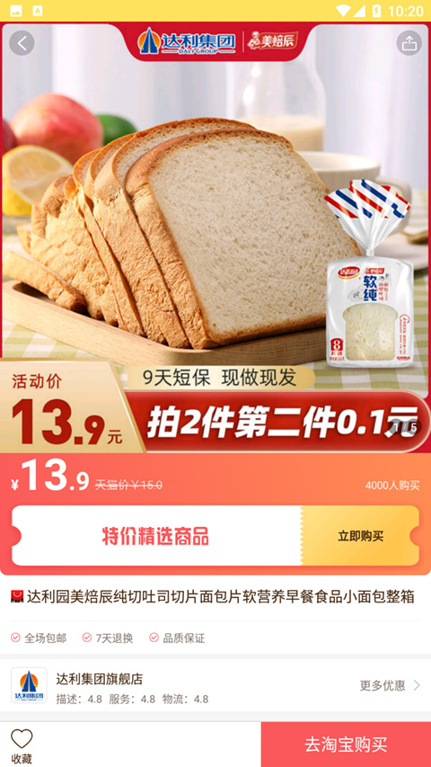 2、找到自己想要购买的商品,点击商品,在商品详情页面中点击【领券购买】,即可进入淘宝页面领取优惠券啦。