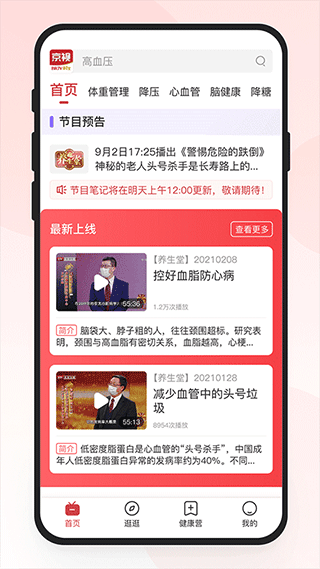 京视健康app是北京卫视一些热门养生节目的官方软件,功能挺全面的。你可以在线观看《养生堂》、《我是大医生》这些节目,还能看到专家们的干货内容和直播。最方便的是可以咨询专家,不用出门就能解决不少健康问题。app里还有各种视频和图文讲解,把名医的知识都整理好了,关键点还帮你归纳好,随时看都能一目了然。