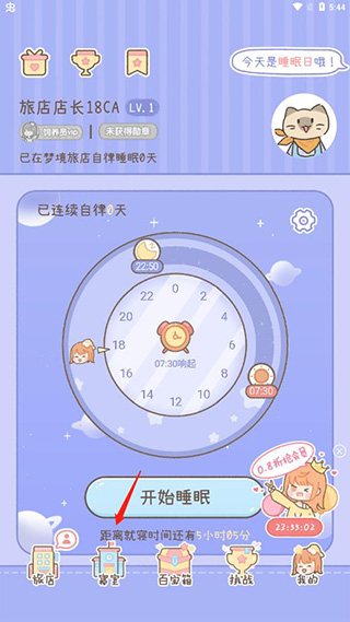 +每日按照睡眠目标规律睡眠,即可获得梦境奖励,经营自己的旅店
