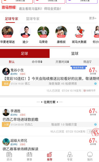斑马体育app是一款专业的体育资讯软件,这里面有海量的赛事资讯供用户阅读,还有体育赛事直播,解说等可以观看,并且软件实时更新最新的体育新闻,让用户第一时间掌握到最新的的体育动态,并且里面还有专业的团队对体育赛事进行分析,采集了以往20年的数据分析经验,分析准确率远超同业水平。此外,该软件内所有的资讯以及直播都是免费观看的,用户无需任何花费便能了解到最全面的体育资讯,赛事直播还有专业讲解员为您带来精彩的比赛讲解,让你时刻体验体育赛事的魅力。软件上还设有论坛版块,用户可以在上面发表自己的感想与心得,从中找到与自己志同道合的朋友。感兴趣的用户欢迎下载体验。
