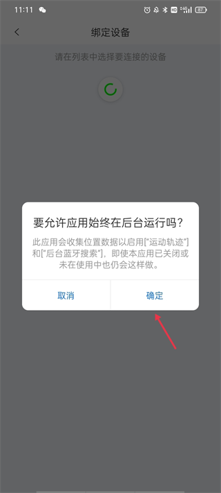3、页面这时候弹出提示,软件需要权限,确定之后就可以等待设备搜索出来并连接了。