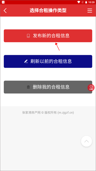 2、这里显示了三个小功能模块,点击“发布新的合租信息”。