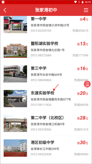 3、选择你小孩所在的年级以及学校,选好后进入到这个学校的详情页里。