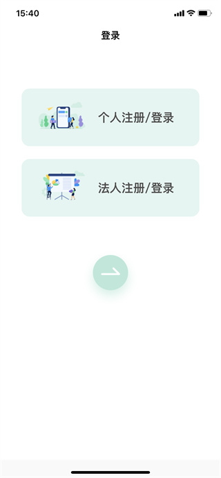 1、打开软件,这里需要选择个人注册/登录或法人注册/登录;