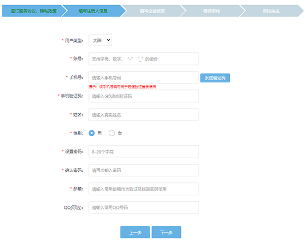 3、填写完个人信息后点击下一步,填写企业相关信息,确认信息无误点击提交,等待审核,审核通过后就可以通过该账号登录筑易达app了。