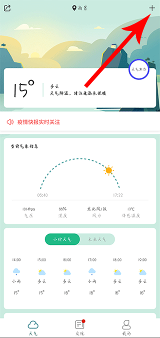 2、逐时预报:实时掌握24小时天气变化,当天温差提前预防。