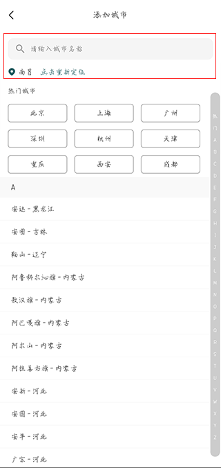 3、可以直接输入城市名称查找,也可以依靠软件自动定位
