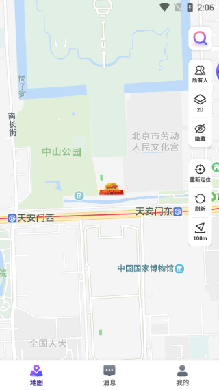 3、进入软件主页,你的位置就会共享再软件上,同时你可以看到附近同样使用地图app的用户
