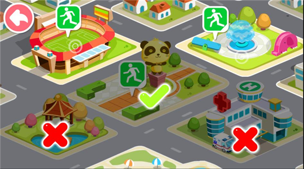 2、选择地图中正确的地震逃避场景,选择正确的场景会出现√;