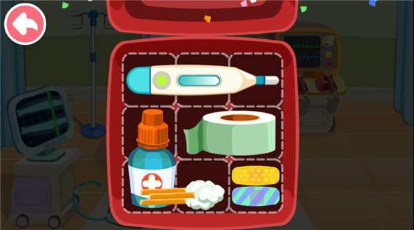 6、将屏幕中的物品放入相应医疗包相应的位置;