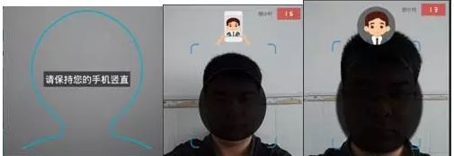 将脸部至于提示框后,根据语音提示完成简单的动作操作。如:上下小浮动晃动手机,缓慢上下点头,左右摇头等操作,进行脸部活体特征采集。