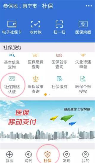 ①登录APP以后,在界面下方菜单栏点击“社保”栏目,进入“社保”服务界面。