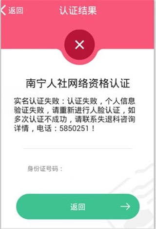 因网络问题、没办理二代身份证、或者公安部信息库相片缺失等因素,导致认证失败时,系统会返回认证失败的提示。