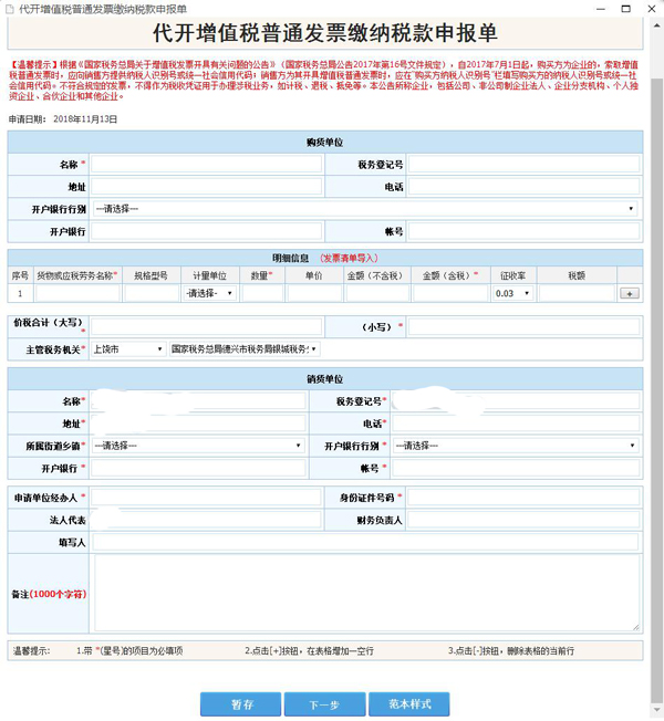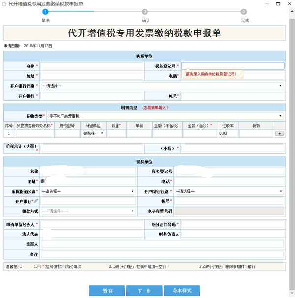 非一般纳税人需要代开增值税专用发票时,可使用此预填功能;