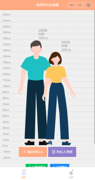 身高模拟器app也叫Hikaku-Sitatter是一款可以模拟身高数据对比的软件,软件界面简洁,各种软件功能一目了然,测试轻松有趣,不再枯燥乏味,可以轻松有趣的进行测试。软件中可以对角色进行编辑,自定义对比人角色外观,让简单的数据更加美化,简单直观的查看到各对比人之间的身高差距,也适用于成长中的孩子,每天记录身高变化,直观地感受到近期的身高成长。身高模拟器所有功能都是免费使用的,非常方便,有需要的用户欢迎在当快下载使用!