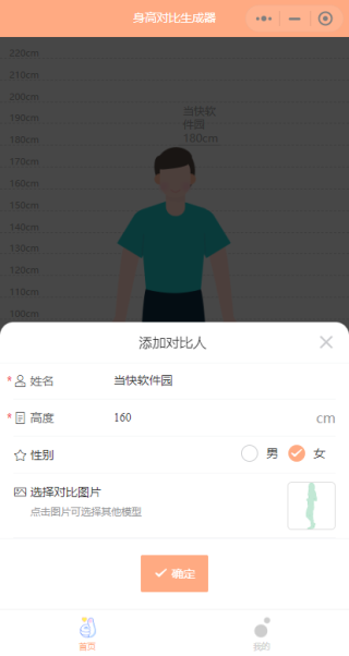 1、从当快下载安装身高模拟器,进入,点击“添加对比人”