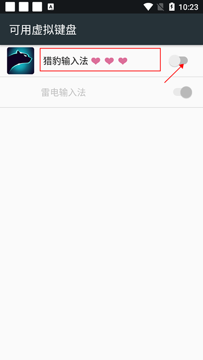 2、接下来按照提示,从键盘和输入法功能列表的下方勾选猎豹输入法,就可以成功的启用并进行设置了。