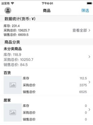 1、实时统计,对库存商品数量、成本实时统计,并可根据分类、仓库、颜色、尺寸进行统计,数据一目了然。