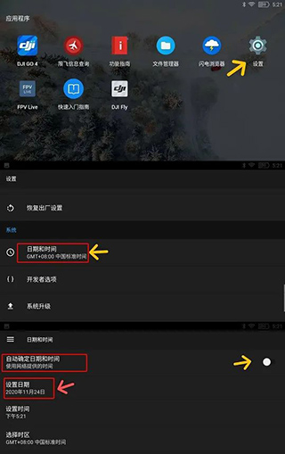 3、退出 app,进入【系统设置】--【日期和时间】,关闭【自动确定日期和时间】,然后将日期修改为 2020 年,如下图所示: