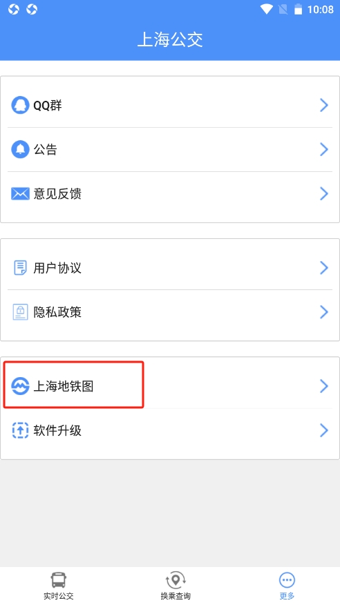 6、另外,软件不仅可以查看公交线路,还可以查看上海的地铁图,点击下方功能栏中的【更多】,然后再点击【上海地铁图】即可。