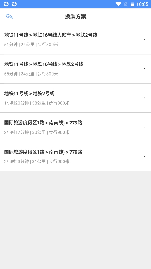 4、还可以进行换乘查询,比如说从迪士尼度假区到东方明珠,点击旁边的放大镜图标;