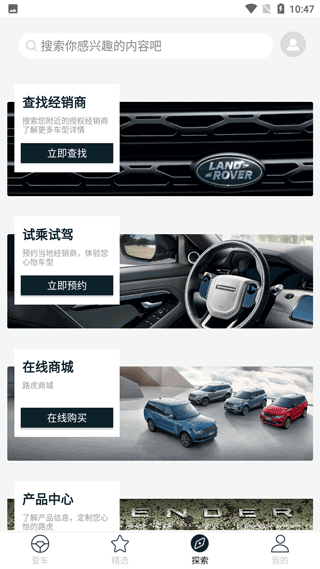 路虎APP真是个神器!专门给路虎车主用的,功能超多还方便。下载安装后就能直接用了,登录进去全是精选内容,各种汽车资讯和用车小知识都能看到。最棒的是还能绑定你的爱车,随时查看车辆信息和服务功能。点开搜索就能找附近的经销商、预约试驾甚至在线看车,感觉像有个私人顾问一样贴心。